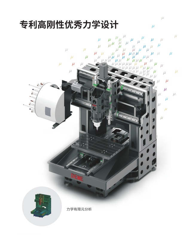 5.機(jī)身設(shè)計通過有限元分析,優(yōu)化機(jī)臺設(shè)計,提供極佳的切屑剛性,有效避免切削力帶來的震動,以確保加工精度和穩(wěn)定性。
